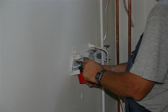Der Elektriker hat mit der Endmontage begonnen.