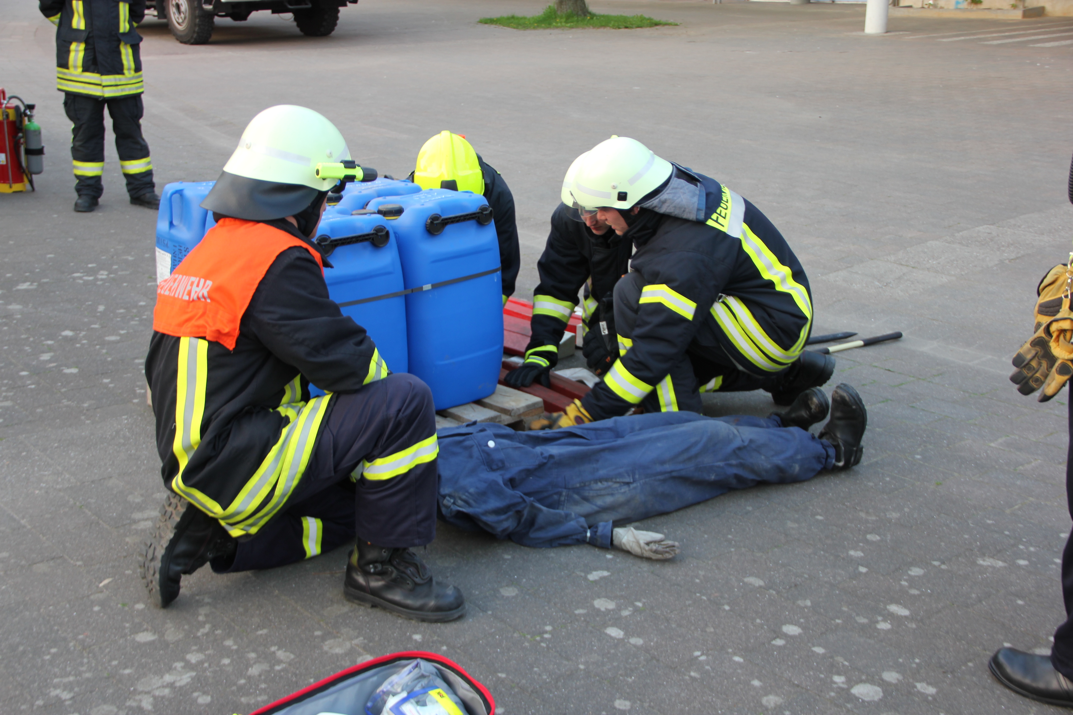 Die eingeklemmte Person wird mit einfachem Gerät befreit