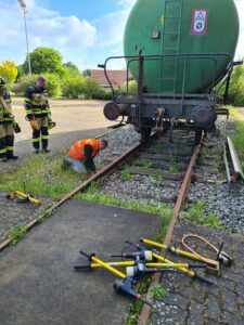 Der Ausbilder der Deutschen Bahn AG zeigt wie es geht und erklärt detailliert die durchzuführenden Maßnahmen für eine erfolgreiche Erdung