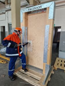 Gegen 11 Uhr ging es dann zu einer geplanten Übung auf dem Gelände der Jürgen-Schumann-Kaserne in Appen. Mit den Jugendlichen wurden Techniken des Vorgehens im Innenangriff sowie die Türöffnung mittels Halligan-Tool geübt.