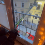 Für die Einsatzkräfte auf der Drehleiter ließ der nächste Einsatz nicht lange auf sich warten. Nur wenige Häuser weiter drohten ebenfalls massive Eiszapfen auf den Gehweg zu stürzen, sodass erneut Gefahr für Passanten bestand. Um diese akute Gefahr zu beseitigen, wurde abermals die Drehleiter in Stellung gebracht und unter den wachsamen Augen von Hund „Freezer“, einem großen Feuerwehrfan, sämtliche Eiszapfen sorgfältig abgelöst und kontrolliert zu Boden gebracht.