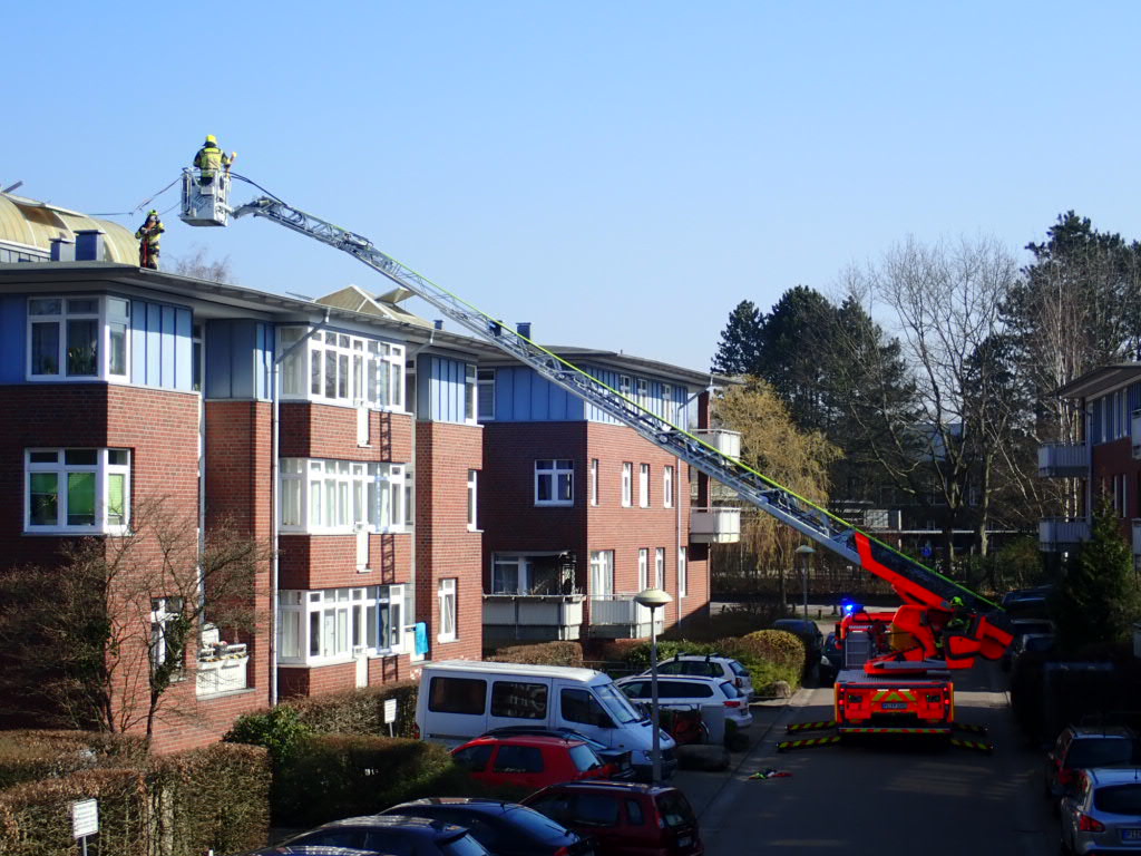 Eine Lichtkuppel drohte wegzuwehen. Während der zurückliegenden Sturmtage im Februar hatte sich die Lichtkuppel von ihrer Befestigung gelöst. Notdürftig wurde diese durch die Hausverwaltung gesichert. Nach nun knapp einem Monat hat diese Sicherung ihren Geist aufgegeben. Ein Kamerad hat, aus dem Korb der Drehleiter heraus gesichert, die Lichtkuppel zurückgedrückt und dann erneut mit den vorhandenen Spanngurten…