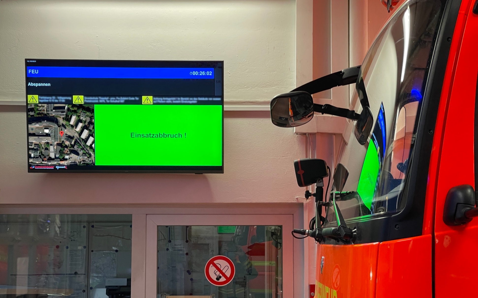 Die Brandmeldeanlage wurde durch Staub, der bei Arbeiten mit einem Trennschleifer entstand, ausgelöst. Für uns keine Tätigkeit.
