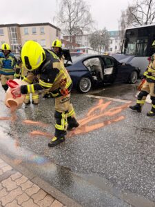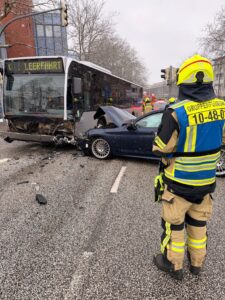 Am Freitagvormittag wurden wir zu einem Verkehrsunfall zwischen einem Bus und einem PKW mit mehreren Verletzten nur unweit der Hauptfeuerwache alarmiert. Der Einsatzleiter vom Dienst konnte kurz nach seinem Eintreffen die Meldung bestätigen und die Rückmeldung geben, dass keine Personen in den Fahrzeugen eingeklemmt sind.