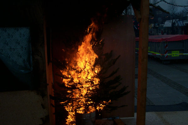 Leider nur ein gescheiterter Versuch, den Brand eines Weihnachtsbaumes zu simulieren.